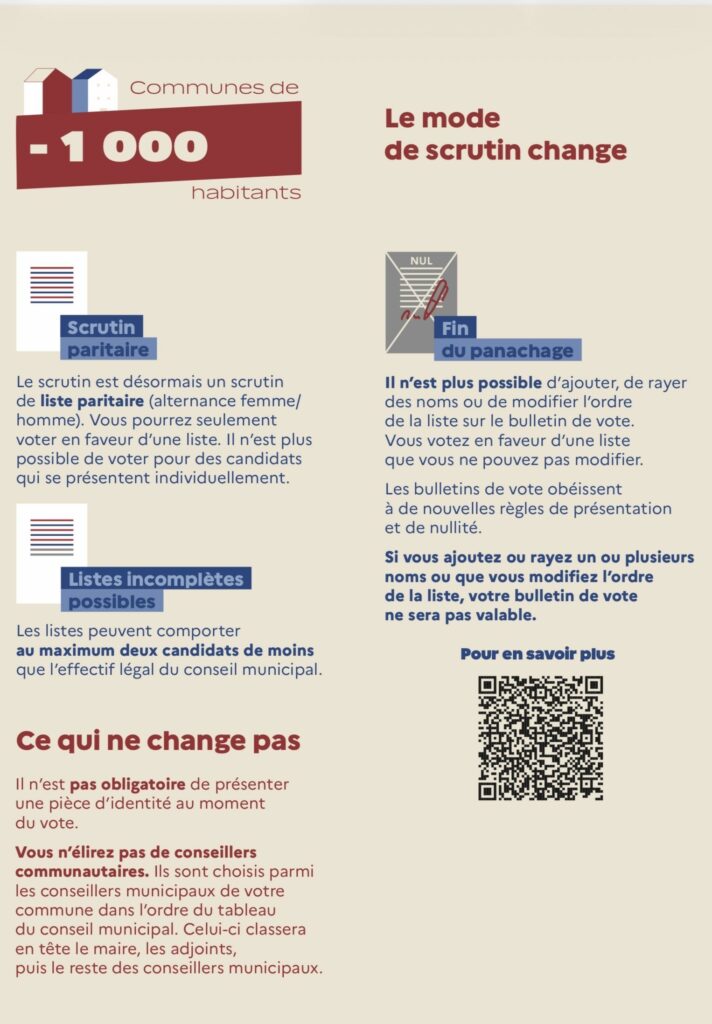 NOUVEAUTE pour les communes de -1000 Habitants la liste entière doit être élue et en aucun cas il ne faut rayer de noms sous peine de voir le bulletin de vote considéré comme nul.