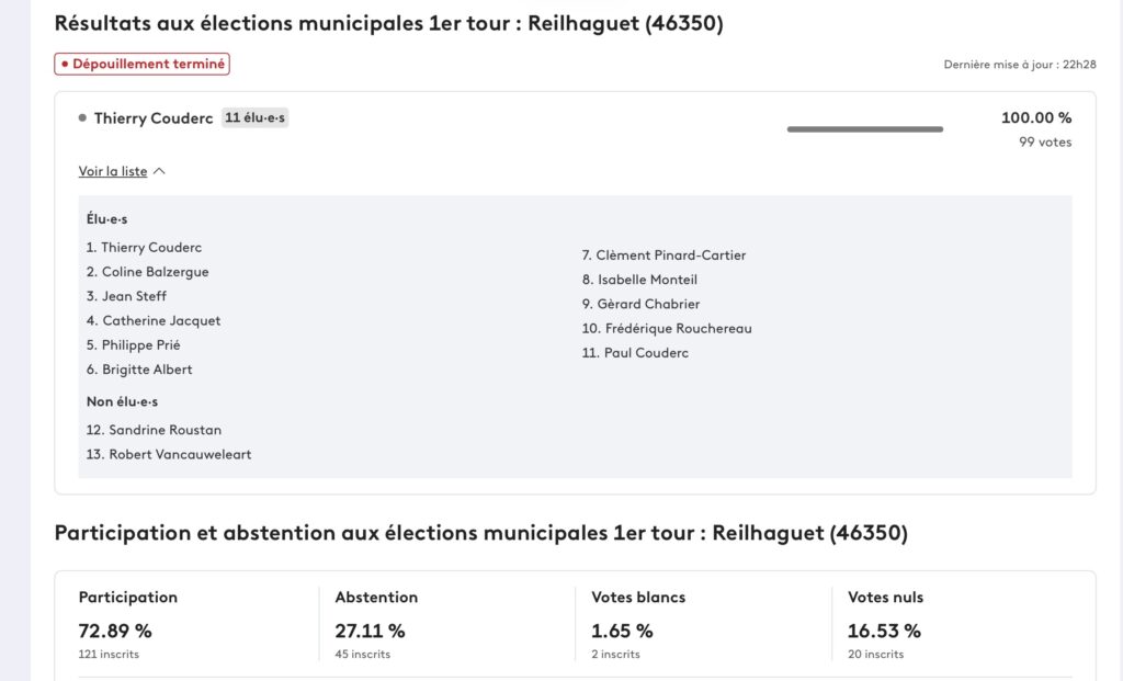 Résultat de l’élection législative du 15 mars 2026 à Reilhaguet 166 inscrits